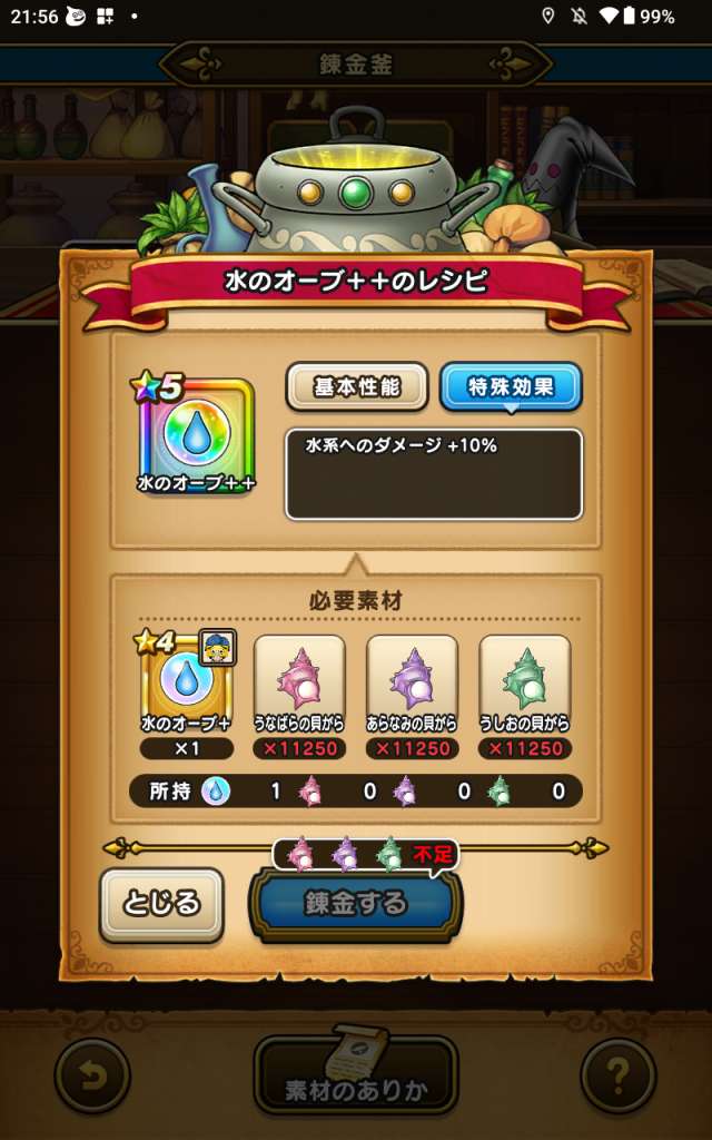 ※水のオーブ++は水のオーブ+を錬金する必要があります。