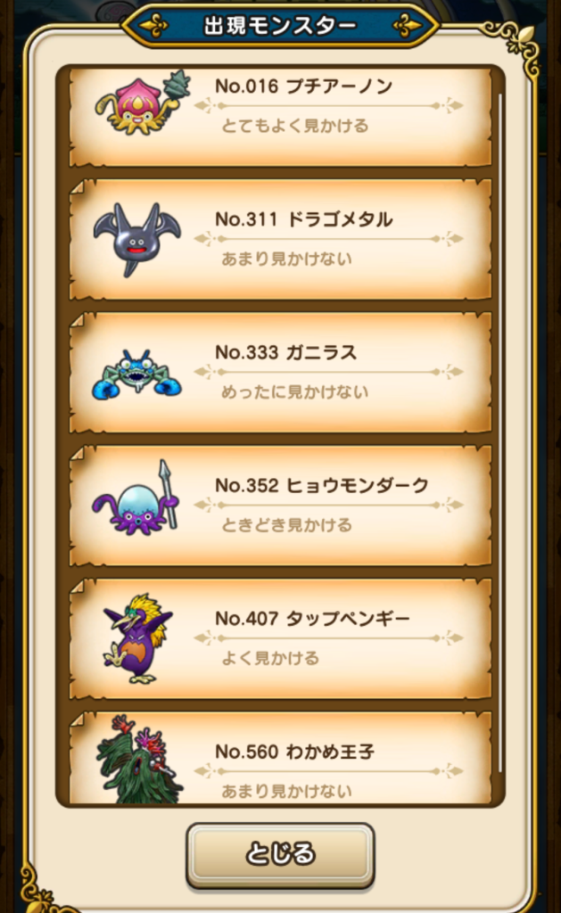 敵側の守備力が高めなため適正武器があるなら呪文やブレスで構成した方が良さげ。ただ流石に百獣鞭は型落ちだった。竜王爪は十分やれる。今回は魔人に持たせた方が良いかも。ラプソーンも相性良いし。