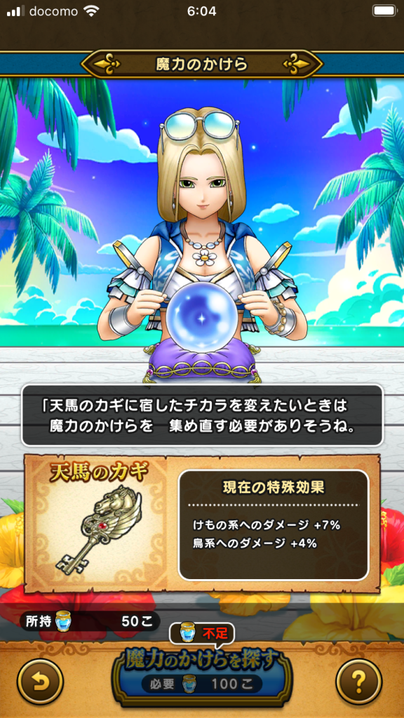 | 6 | ▼魔力のかけらで「天馬のカギ」が変化(自動で効果が変化する) |