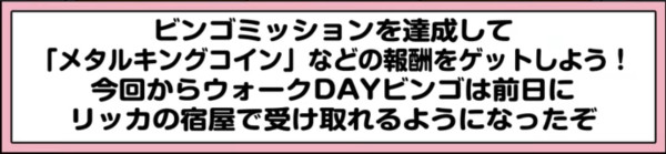 今回もいつものビンゴやメガモン・メタルキングなどがあります。