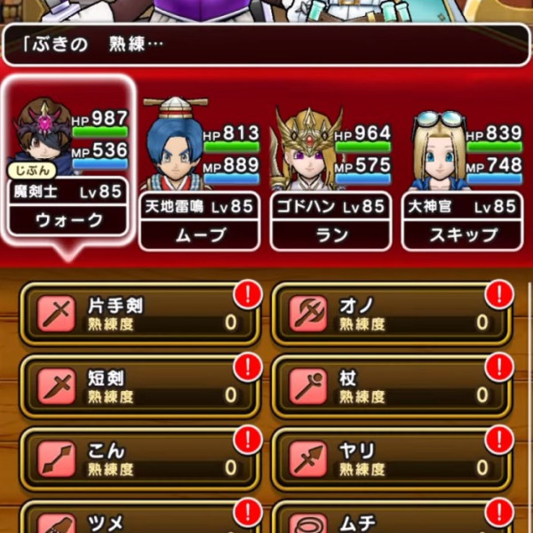 全ての武器種にぶき熟練度が追加され、素材を使うことで熟練度を上げることができます。