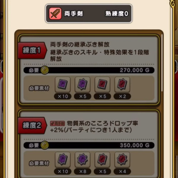 ぶき熟練度を1以上にするとぶき継承が解放されます。