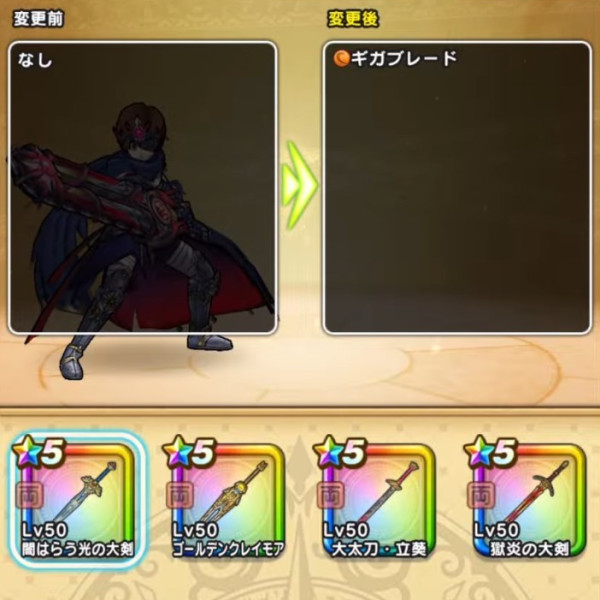 性能は不明ですが、迅雷天の姿変化と考えるとデイン属性アップが付いているかもしれません。