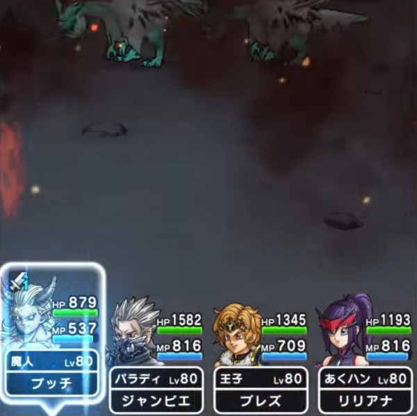 全体に550ほどのダメージでした(無属性?)。「カミナリと狂風」というメッセージがあったため、攻撃に種類があるかもしれません。