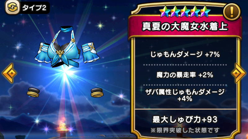 ドラクエウォークの防具「真夏の大魔女水着上」の評価や習得スキル・特殊効果をまとめています。