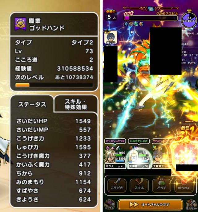 雷光さみだれ被ダメ200×4が特に防御バフ無しゴドハンで70~110×4とか、大渦潮もグレイトウォール発動で仲間の被ダメ2~300辺りで守り人もせいぜいHP黄色になるか程度