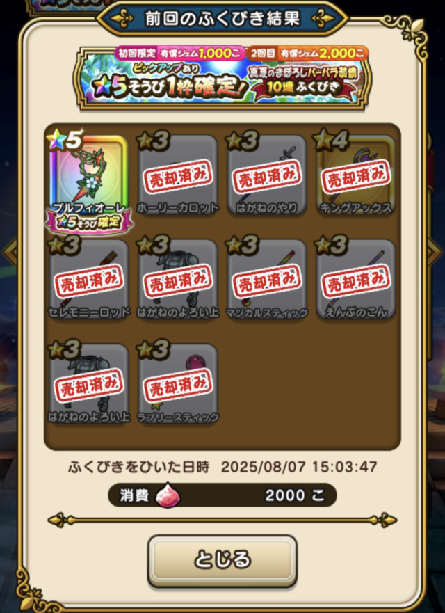 ブルフィオーレ出るまでガチャ?、継承ガチャ、グラコスエビル討伐、等 2025年08月14日2430