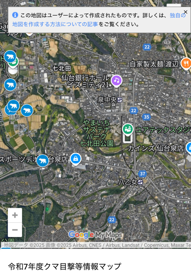 会場から西側に少し行ったあたり、結構熊目撃されてるから。