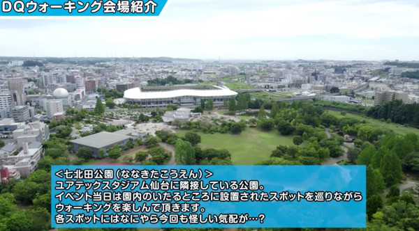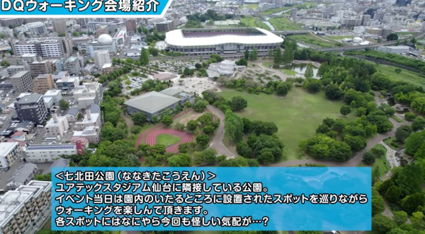 ドラクエウォークと連動したリアルイベントです。第5回は宮城県仙台市「七北田公園/ユアテックスタジアム仙台」となります。