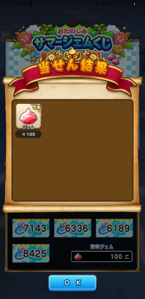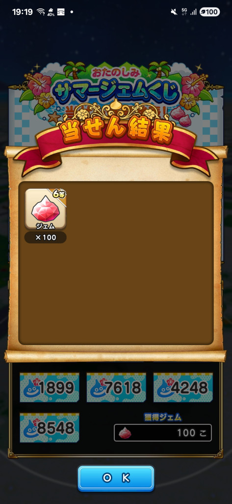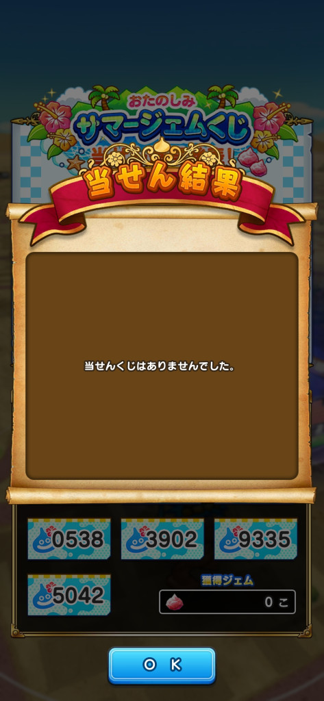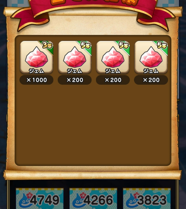 私は4等1枚のみで合計300ジェムでした