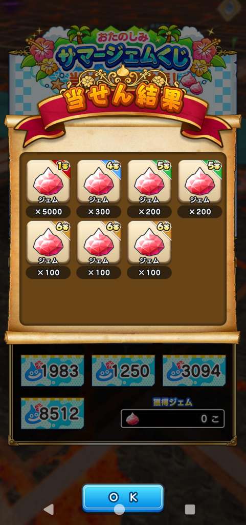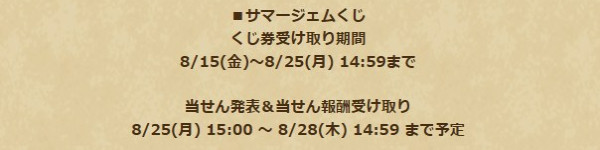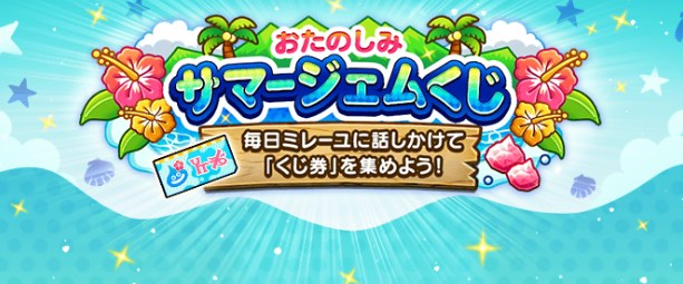 夏のキャンペーンの一環として「サマージェムくじ」が開催。賞品はすべてジェムで、1等は5000個!