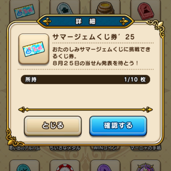 8/15(金)~8/25(月)まではジェムくじ券を集める期間です。