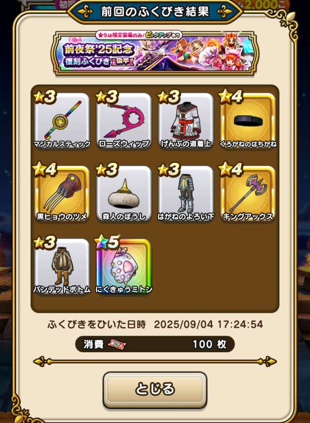 | 前夜祭'25復刻ガチャ(後半) | ||