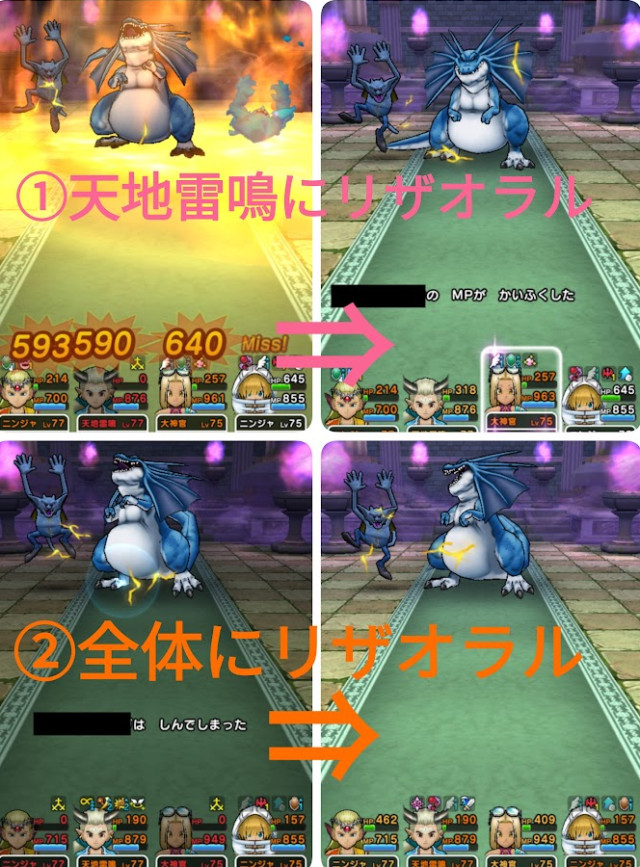 水竜で麻痺させて、ブリザード→グリゴンダンス→リザードの順に倒しています。