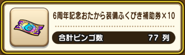 | 77列目 | 6周年記念おたから装備ふくびき補助券×10 |