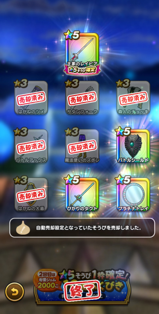 マイレージと補助券で八竜神x2、リーザス杖・翼斧・水晶を各1GET