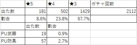 個人的に記録しているガチャ排出率です
