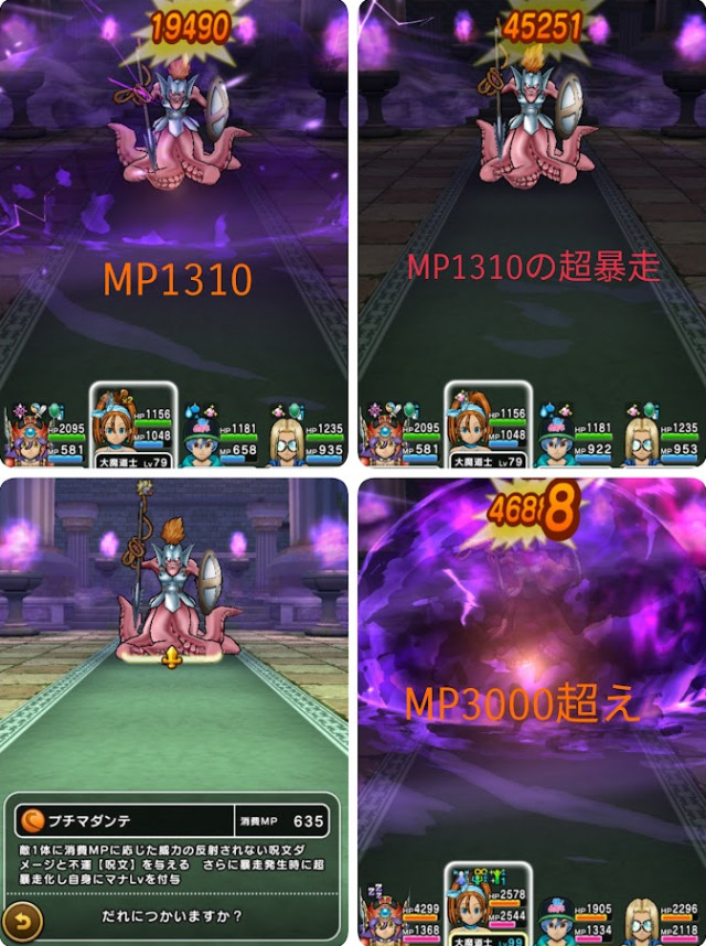 バフ無しで比べてみたけどMP1310の超暴走プチ≦MP3000超え通常プチ