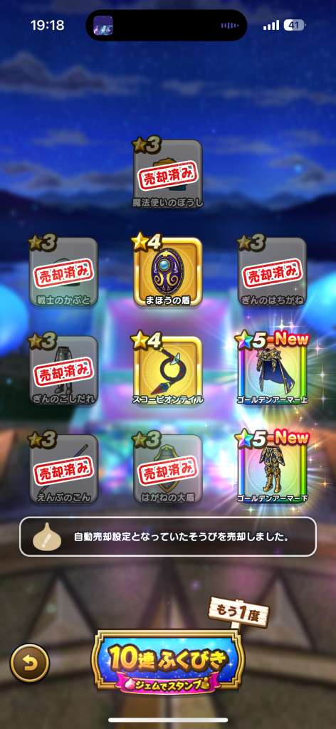 100連で武器と盾は確保しましたが、防具が全く出てません。