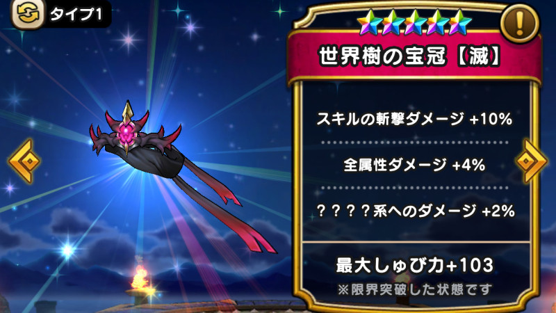 ドラクエウォークの防具「世界樹の宝冠【滅】」の評価や習得スキル・特殊効果をまとめています。