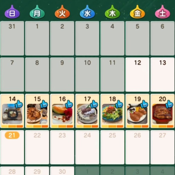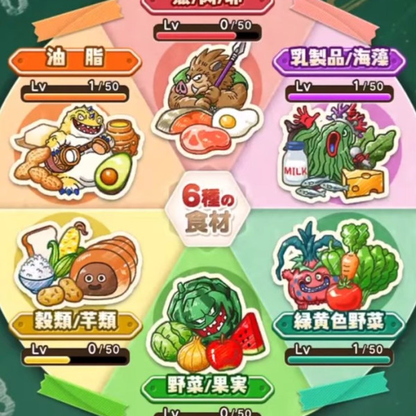 栄養素に応じて経験値が貯まり、見た目装備などの報酬がもらえます。