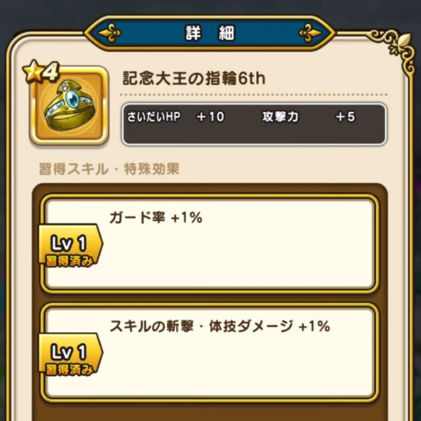 毎年恒例の記念大王スライムも登場します。今年も6回討伐することで、★4アクセサリー「記念大王の指輪6th」を入手できます。
