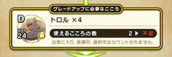 ドラクエウォーク初期のD換算625個と要求数が多いこころです。Sランクになるまで多く討伐する必要があるので、この機会に手に入れるのもありです。