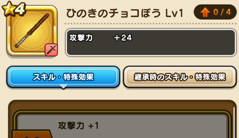 ひのきのチョコぼうの性能と習得スキル