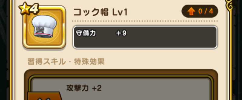 ドラクエウォークの防具「コック帽」の評価や習得スキル・特殊効果をまとめています。