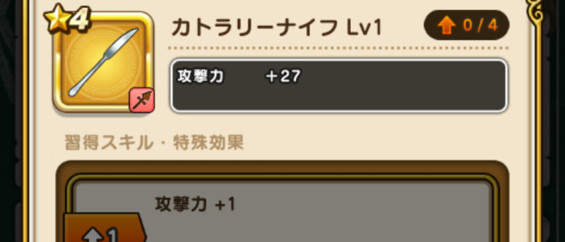 ドラクエウォークの武器「カトラリーナイフ」の評価や習得スキル・特殊効果をまとめています。ダメージ比較やおすすめこころセットを最大火力ランキングで確認することもできますので参考にしてください。