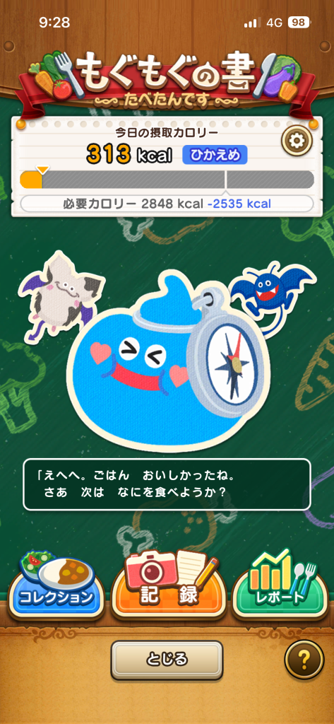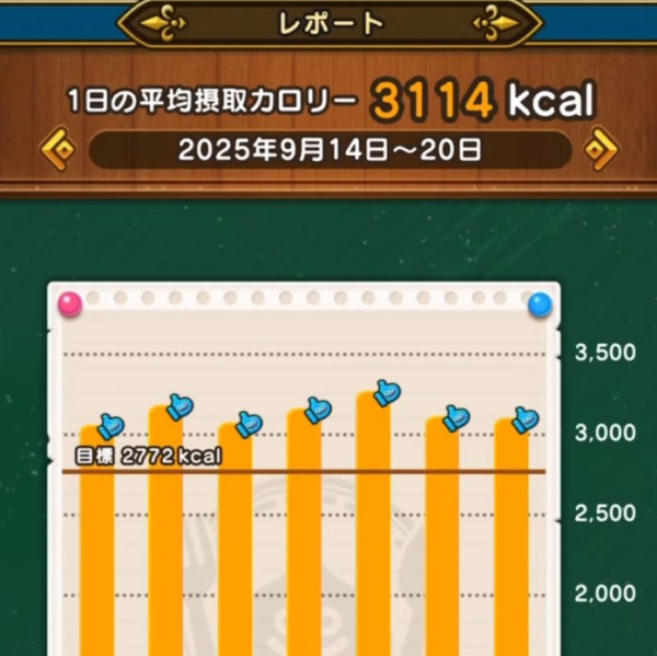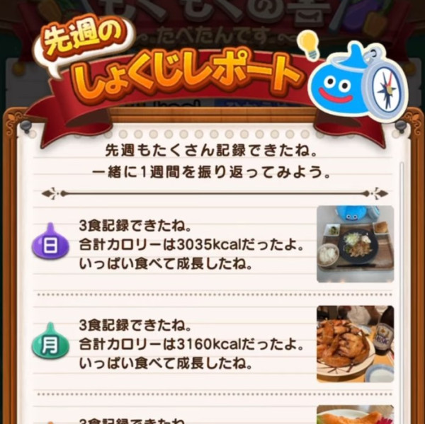 いまんとこ翌日入力、3食×2日くらいあると1500pになるわ。