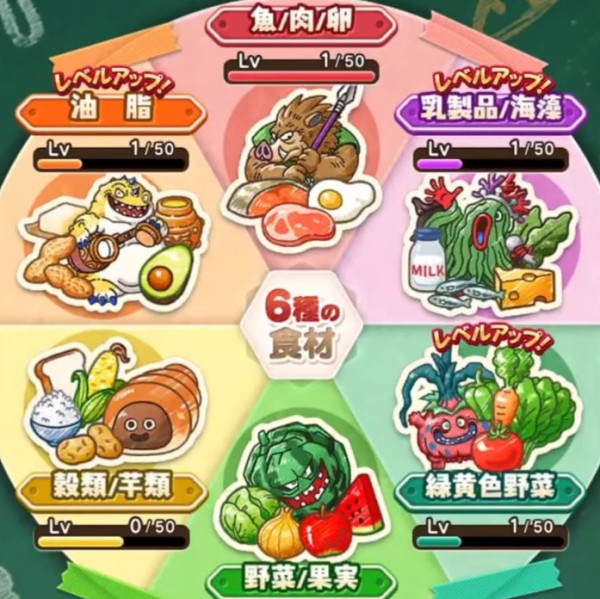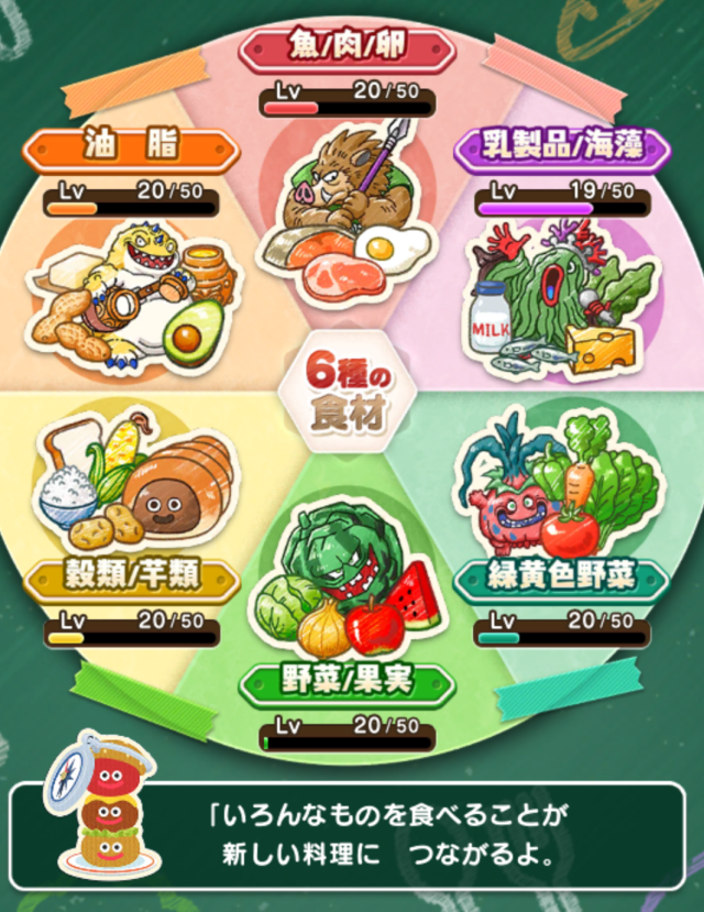 恐らく6種の食材のレベルに応じて覚えていってるのだろうと思います。