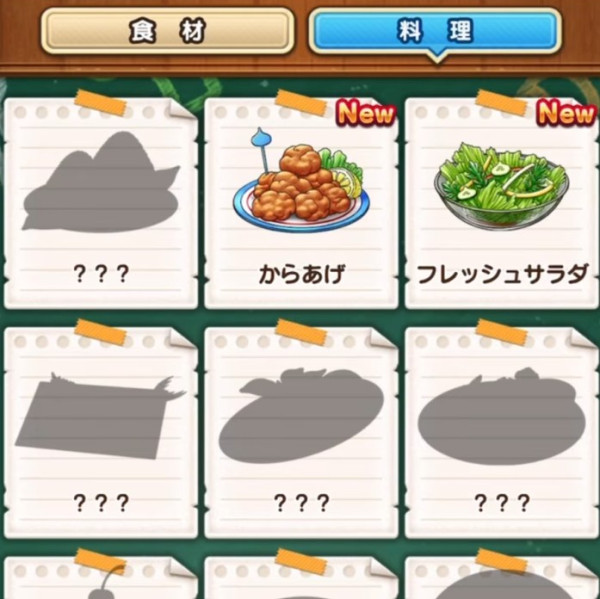 恐らく6種の食材のレベルだけ上げても思いつかない特殊な条件のものが下の方にはあるのかもと思っています。