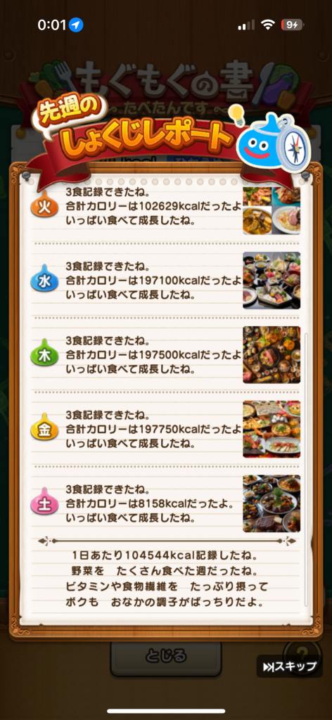 心当たりはポテト系やおつまみ系多めだったのと、今週は4食目を入力した事が5回あった事。