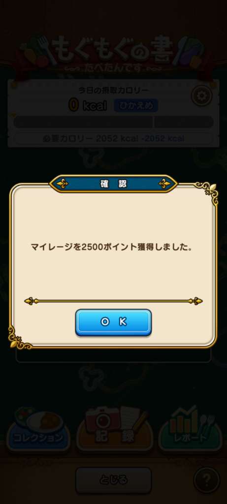 ③当該日の24時or翌日3時を過ぎれば、摂取カロリーが判定され、ミッション達成となる(はず)。