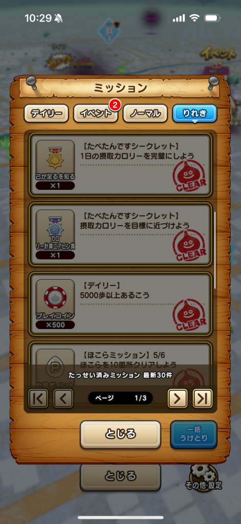 ![]() | ジェム×?個 もぐもぐの書紹介クエスト:100個 もぐもぐの書ノーマルミッション(食事1日):100個 もぐもぐの書ノーマルミッション(食事5日):100個 もぐもぐの書ノーマルミッション(食事10日):100個 もぐもぐの書ノーマルミッション(食事30日):100個 |