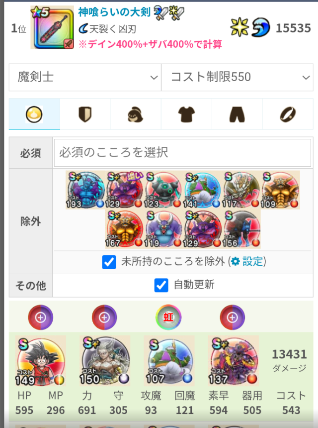 自分はザバ斬撃を盛れるのが心珠20%しかないから、ザバ以外へのちいさなメダルボーナス14〜16%を超えないようにするには、他属性のボーナスは3%までしか許容できない
