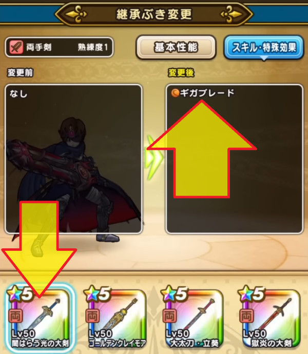 装備している武器と所持してる武器のスキル・特殊効果を組み合わせることで、魔人の二刀流のように別武器のスキルを使えるようになります。