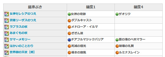 武器一覧ページ継承可能なスキル・特殊効果を表示しました。