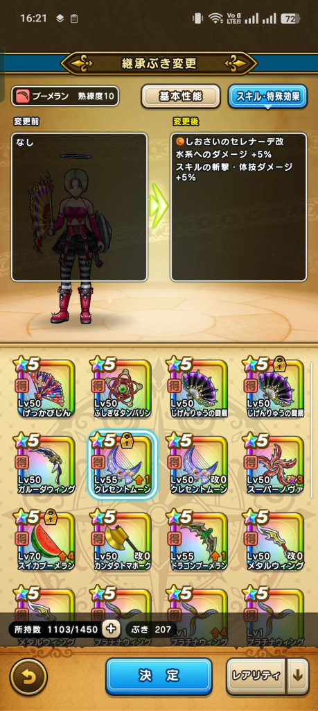 初期にガチャで入手して錬成きてもずっと武器袋の肥やしになってた1凸クレセントムーンを装備するときがついにきたか