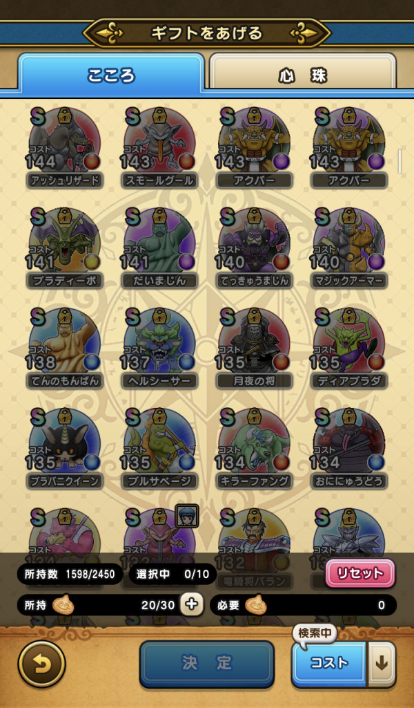 ![]() こころ | ・S~Dランクまで ・宝の地図のフィールドに出現するメインストーリー系まで ・強敵モンスターは交換可能 ・ギガモン、メガモン、ほこら、覚醒千里行限定などは対象外 ・イベント配布も対象外 ・ご当地(地域限定)のこころも対象外 ※鍵を掛けていると交換不可 |