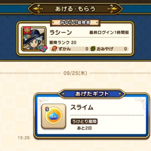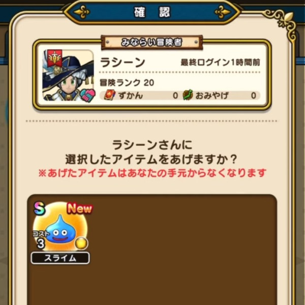 譲渡するには特別なアイテム「スラクッキー」が必要になります。ギフトが受け取られなかった場合、消費したクッキーは戻りません。
