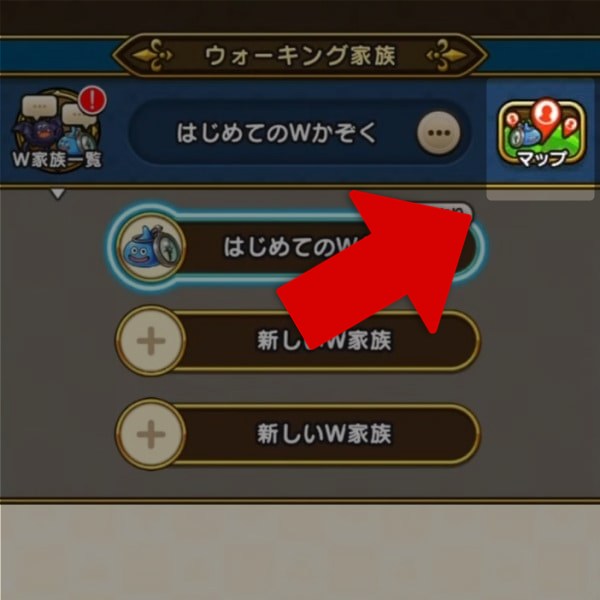 | 3 | ウォーキング家族画面の左上「W家族一覧」 |