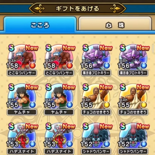 こころや心珠を交換することができます。Sランクも譲渡することができますが、ギフトを「あげた」時点でこころや心珠はなくなります。ただし、受け取られなかった場合は帰ってきます。