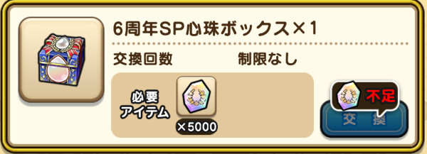 | 入手数 | 6周年SP心珠ボックス1個 |