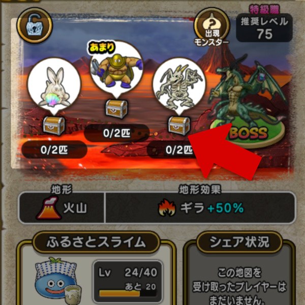 たびたび質問をいただくのでこちらも。「お宝モンスター」は、宝の地図のボスの左に表示されている3種類のモンスターを指します。
