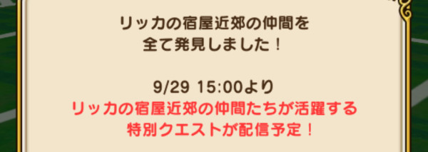 各地方ごと仲間をすべて発見すると、上記の方なポップアップが表示されます。9/29より特別クエストが配信予定。