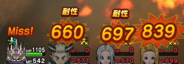 アンコール(天地雷鳴)→クシャラミ(魔人)、会心必中、バイキルト(魔人)、根絶やしで1キル可能