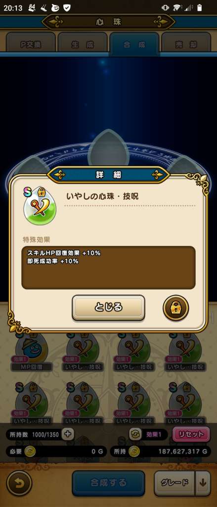 | こころ最大コスト+4 じゅもんHP回復効果+8% 魅了耐性+7% 転び耐性+5% | ||||