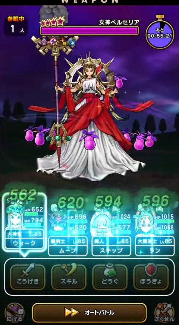 | 練度4 | ザオリク / 消費MP 45 仲間ひとりを HPまんたんで復活させる 対象がターン中にまだ行動していない場合 復活した直後に行動できる(戦闘中3回まで使用可能) |